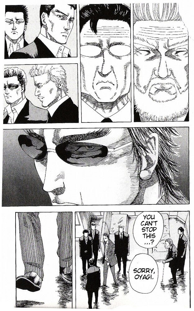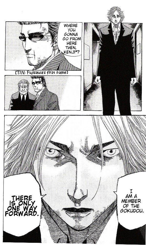 Fujisawa Kenji, 17 years old. Born in Yubari, Hokkaido, a boy with the dream of being a mob member to look out for those around him. After dropping out of school, Kenji went to his local Kumicho, who told him to learn the way of the Yakuza from a man known as "The Master Gangster" - Kujo Eiji. After successfully joining his gang, Kenji united to take vengeance on rival factions who had wronged them. (Source: MU)