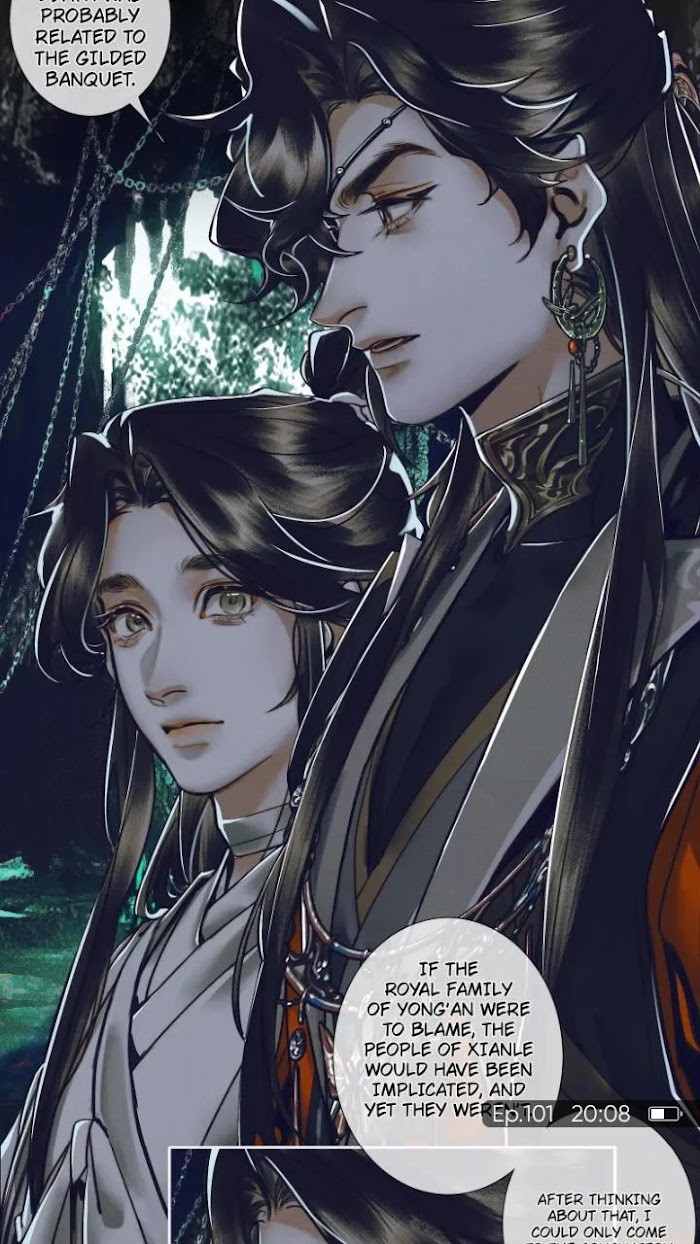 Eight hundred years later, Xie Lian has ascended once again, but this time he has neither the followers nor any incense burned in his name. One day, on his way back from collecting trash, he picks up a mysterious youth and takes him home. This particular youth however, actually turns out to be Hua Cheng, the infamous Ghost King known throughout the three realms who could change both his gender and appearance at the flip of a dime.