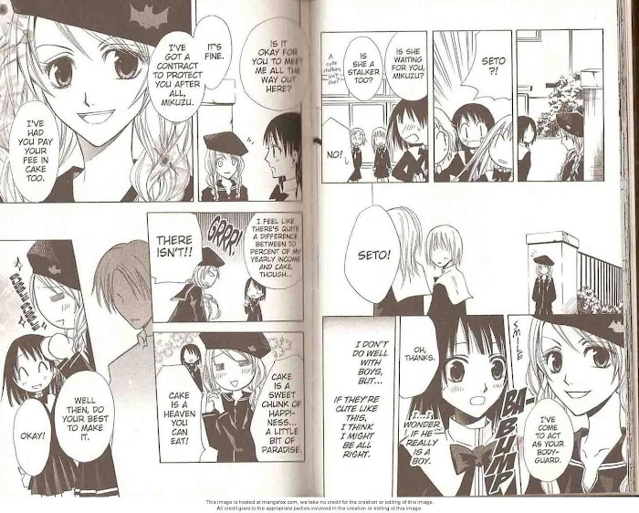 Sudou Mikuzu has a very special talent--she can see ghosts. And because of this predisposition, she's become a magnet for all sorts of unwelcome monsters. Luckily for her she's just met Seto, a friendly, cross-dressing young exorcist. Sudou needs protection from all the creepy phantoms bugging her, and Seto needs to practice his exorcism skills. Consequently, the pair decides to team up and help each other. In return, Sudou promises to bake a cake every time a ghost gets zapped! (Source: VIZ Media)