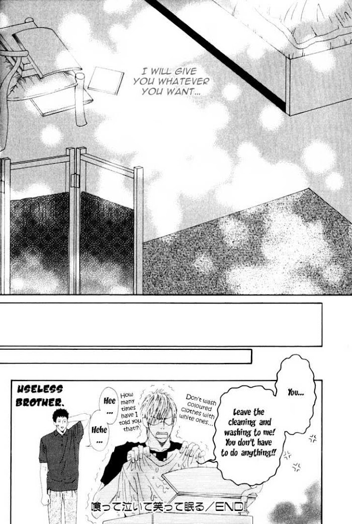 1) Icy Corridor, Kaleidoscope Kousa is staying after school to help Nagai Sensei with some data entry. One thing leads to another, and data isn't the only thing being entered. 2) The Two of Them At The End of The Corridor Continuation to the first story 3) A Bewildered Space Date Third year student Endou started a dating club (for finding good places to go on dates), but because he's considered the "Muddled Prince" he gets Hayanari, a ladies man to work with him. But are both Endou and Hayanari being totally honest in their intentions? 4)Total Reversal Continuation to the third story. 5) Am I Not Good Enough? Kuniharu's older brother Mitsu has just moved back home after breaking up with his live-in girlfriend. These boys have some unresolved issues to work out, but why bother talking about it when there are other ways to express your feelings...Incest warning! 6)Sleeping With Tears of Joy Continuation to the fifth story (Source: MU)