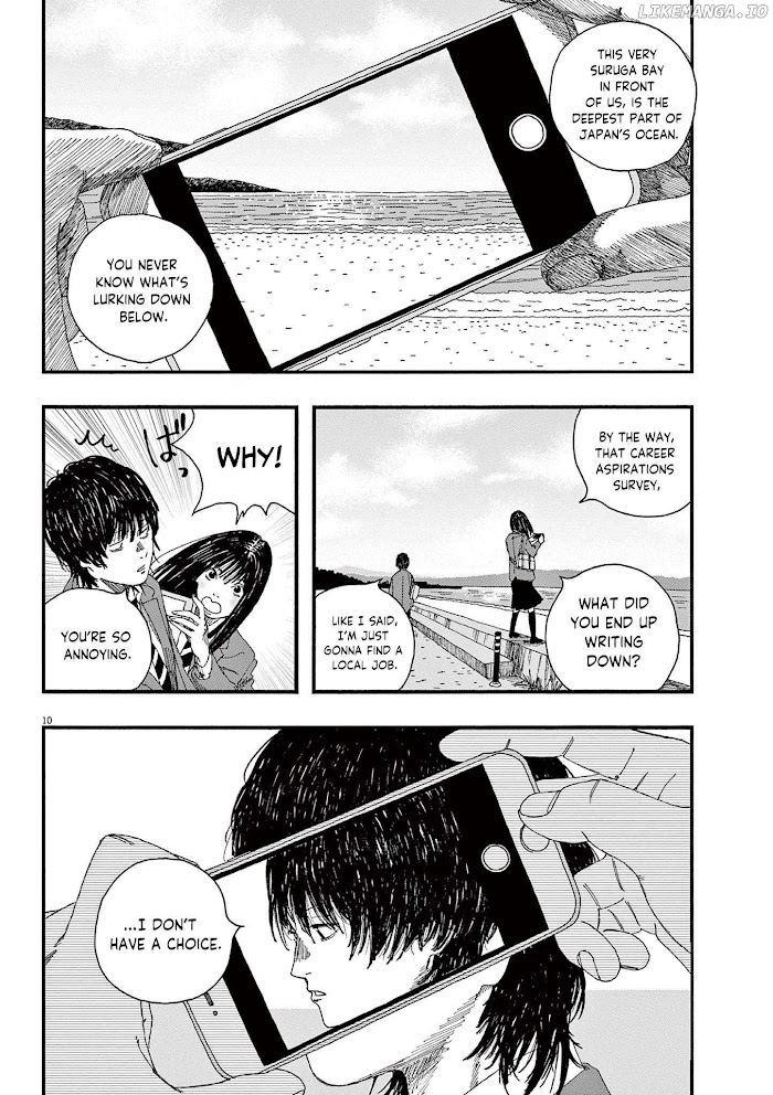 Shizuoka, March 2019. The town where Shiira, a first-year high school student, lives is said that will sink to the bottom of the sea if a major earthquake strikes, but he is fine with that as he still has the past of his mother's death in his mind. Shiira's childhood friend, Anko, has feelings for him and asks him to go to Tokyo with her. One day, however, Shiira meets a woman on a cruise ship, and the wheels of fate begin to move.