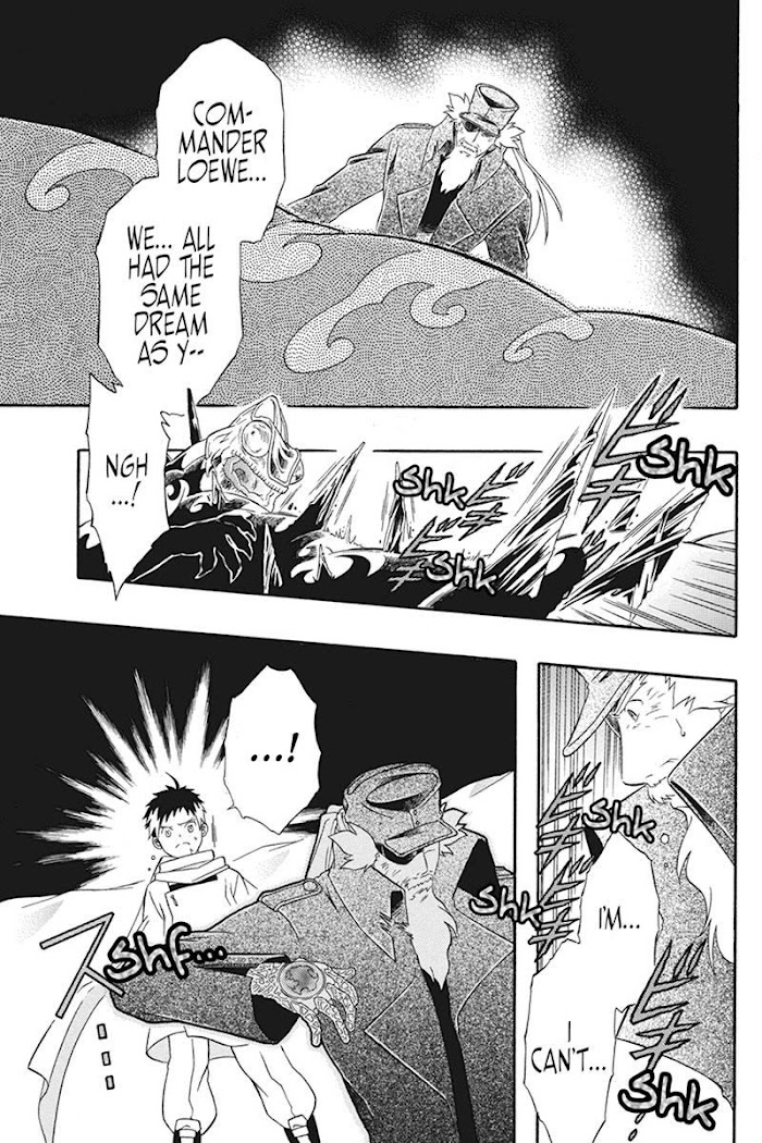 The "Great Destruction" was a tumultuous event which tore the world asunder and reduced it to a vast desert known as the "Dry Aqua." With this event creating rifts in time and space, powerful creatures have emerged into the world. Luckily, civilization has been able to hold against them through the use of "Maki," magical vessels that can contain and restrain the beasts. However, depending on the user, Maki can be just as harmful as they are helpful. Travelling through the Dry Aqua is aged veteran Len and his young companion Jou, hunters who use Maki to capture their marks. However, they also have special targets: "Shadow Eaters," soldiers who once merged together with their Maki but are now unable to control themselves. To keep society safe, the pair task themselves with cleansing the Dry Aqua of this threat. However, once a soldier himself, Len will not be able to escape his sins from the past for much longer. [Written by MAL Rewrite]