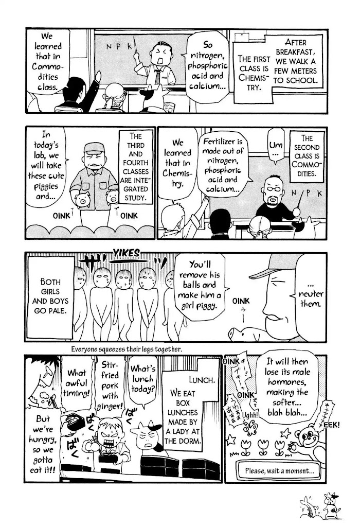 A humorous and insightful autobiography by Hiromu Arakawa, recording her daily life as a dairy farmer in her homeland Hokkaidou before becoming a manga artist. "If there's no water, let them drink cow milk," the Commoner Noble proudly said.