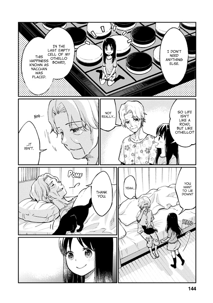 The story centers on grade schooler Nanoka Koyanagi, who meets a short-tailed cat and three different women as she is out taking a walk. The first woman is Minami, a high schooler whom Nanoka sees has many wounds on her wrist. The second woman is another high schooler, constantly called a "whore" by her classmates. The third woman is an old lady, trying to live out her twilight years in peace.