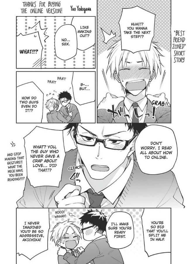 Description : .Amatatsu is a brash, but normal high school student until he wakes up in the middle of doing it with another guy!! To make matters worse, the culprit is his biggest rival, Sen! Is it really possible he's come to a parallel world where he and Sen are a couple...!? In addition to the main story, there are other complicated love stories about a guy with a voice fetish, a boy with a crush on his best friend, and a chubby chaser.