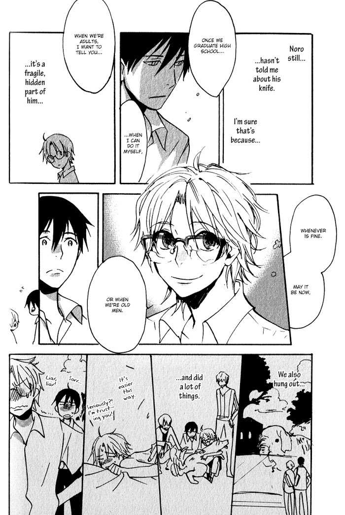 During a high school year opening assembly, Kaede is suddenly embraced by Nomiya, an underclassman transfer student. Nomiya reminds Kaede that they spent a summer together as children and proceeds to do everything in his power to re-enter Kaede's life. Kaede is still shaken by the death of his brother, who may have killed himself from the stress and anxiety resulting from an apparent case of gender dissociative disorder. Kaede is therefore reluctant to grant Nomiya the closeness that the younger boy desires, but, despite his confusion, the two end up becoming close friends - and then something more.