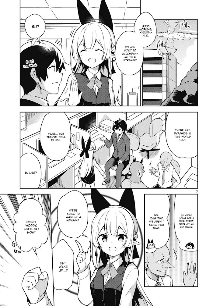 English: Just when Hyuuma Tadahito had finally received a job offer from a publisher, he was hit by a truck. But when he woke up, he was in a publishing company in a world where he was the only human! Now he will have to get used to his new working life in another world...! Spanish / Español: [Spoiler]Justo cuando Hyuuma Tadahito por fin había recibido una oferta de trabajo de una editorial, es atropellado por un auto. ¡Pero al despertar, estaba en una editorial en un mundo en donde él era el único humano! ¡Ahora tendrá que acostumbrarse a su nueva vida laboral en otro mundo...![/Spoiler]