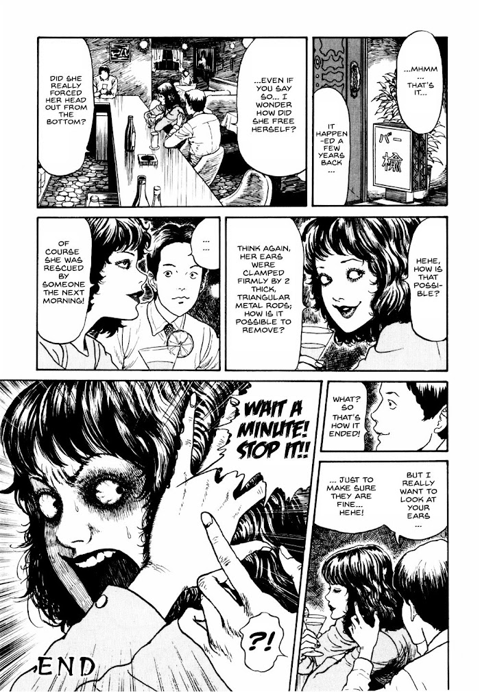 The Ito Junji Kyoufu Manga Collection features themed one-shots from Junji Ito in Hontou ni Atta Kowai Hanashi mangazine. Volume 7. 1. Slug Girl 2. Out of Its Element/Thing that Drifted Ashore 3. Mold 4. Coldness 5. Ryokan 6. The Groaning Drain 7. Biohouse