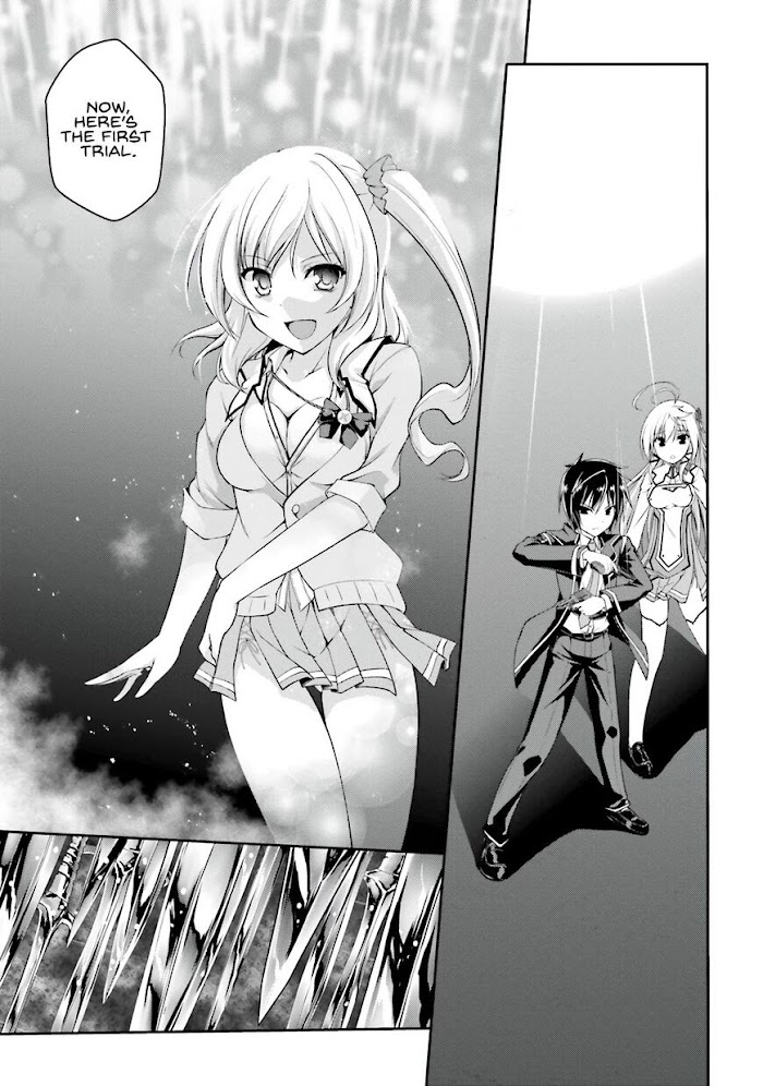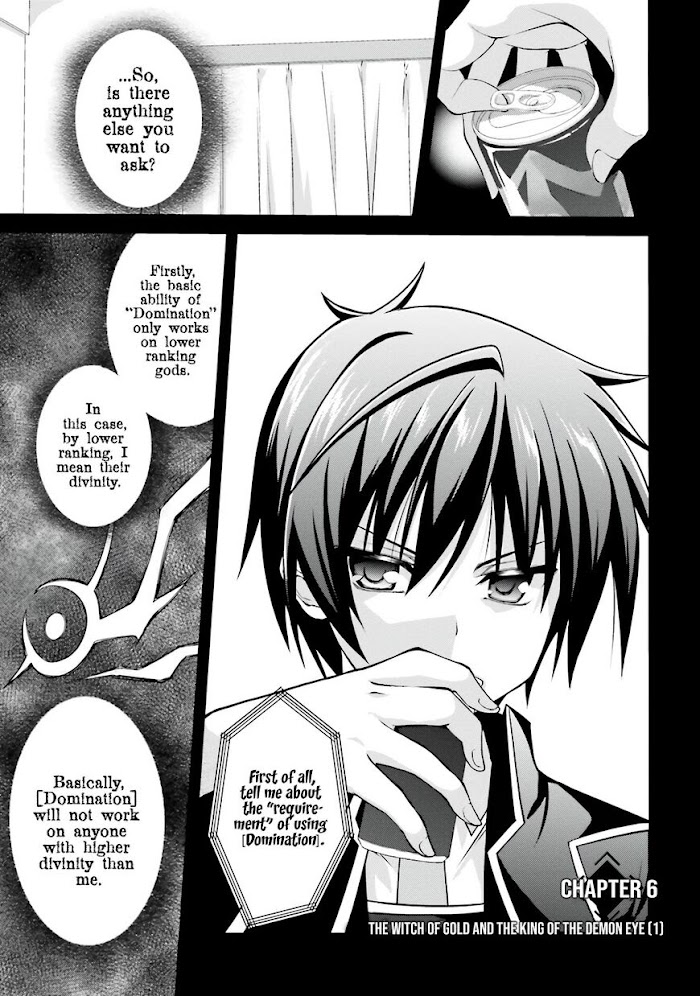 Once before Seven mythical Gods appeared on Earth and their battle split the earth, tore the sky. 10 years after the battle, the calamity should have gone already. However, a boy named Shinsen Raika had his true little sister abducted by a god in the battle and was currently standing in the "Academy" on an artificial island in the distant seas. Here, the night was called as after school time. During that time period, the "Gods' Proxy Wars" were being held by using Divinity-Compatible people for gaining the seat of the law of world (The supreme God). On the first night, Raika was attacked by a Norse mythological God, Brynhildr. Facing death in front of himself he acquired the detestable power of gods, the power for revenge. Using Absolute Domination power from the devil eye of Balor, he tries to take back the world from Gods control. A new mythical heroic saga of a devil eye-user person swearing to take revenge on Gods begins now!