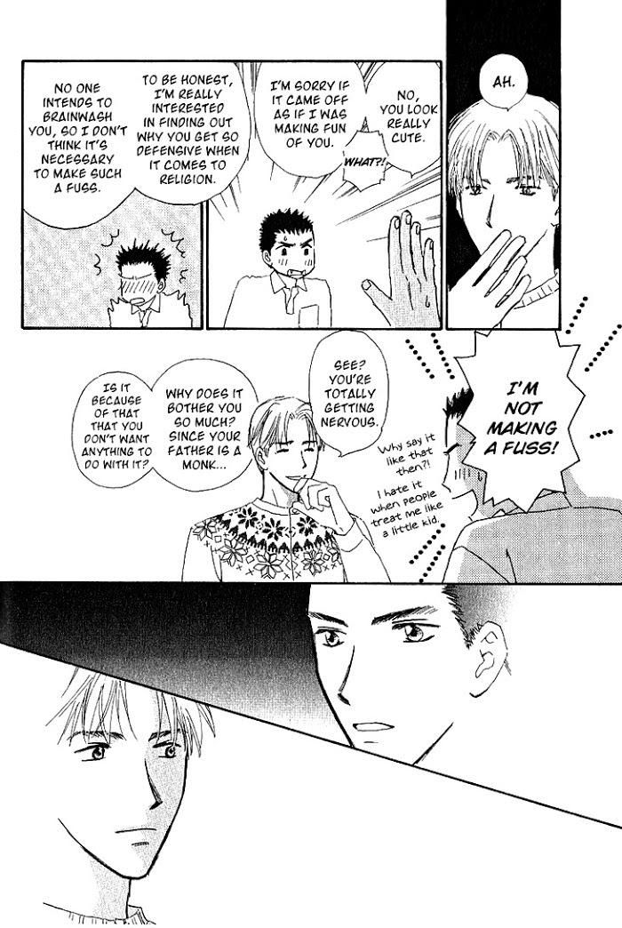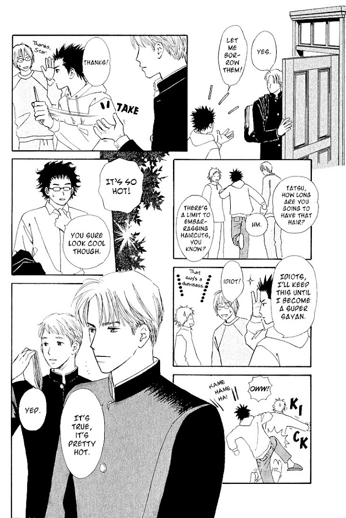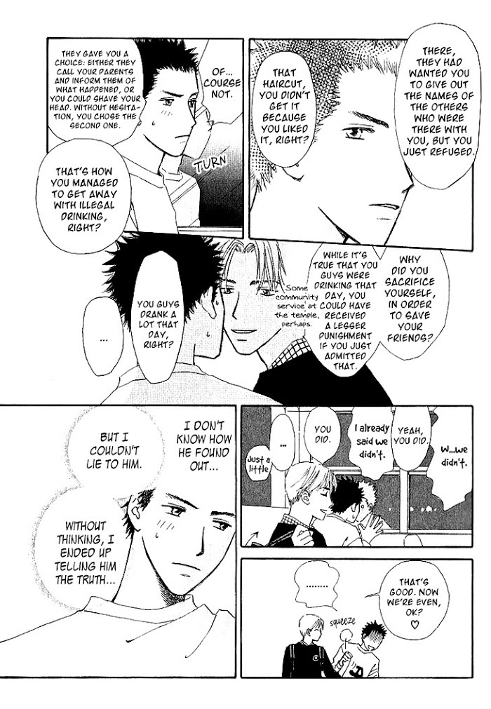 Seiya is an acclaimed star and a genius student who is liked by everyone. Even so, Seiya has a hidden side to him that no one knows about... Lately, he can't stop thinking about Tatsumi, who's in the same year as him. One night, just as they had started bonding together, Seiya confessed his feelings to Tatsumi and kissed him. But all of this occurred in front of a cemetery, which freaked out the scaredy cat, Tatsumi. And because he was scared, Tatsumi was unable to reciprocate with honesty. But the next day, their relation became...?! This is a series of love stories in an all boys institute! (Source: Girls' Generation Scanlations)