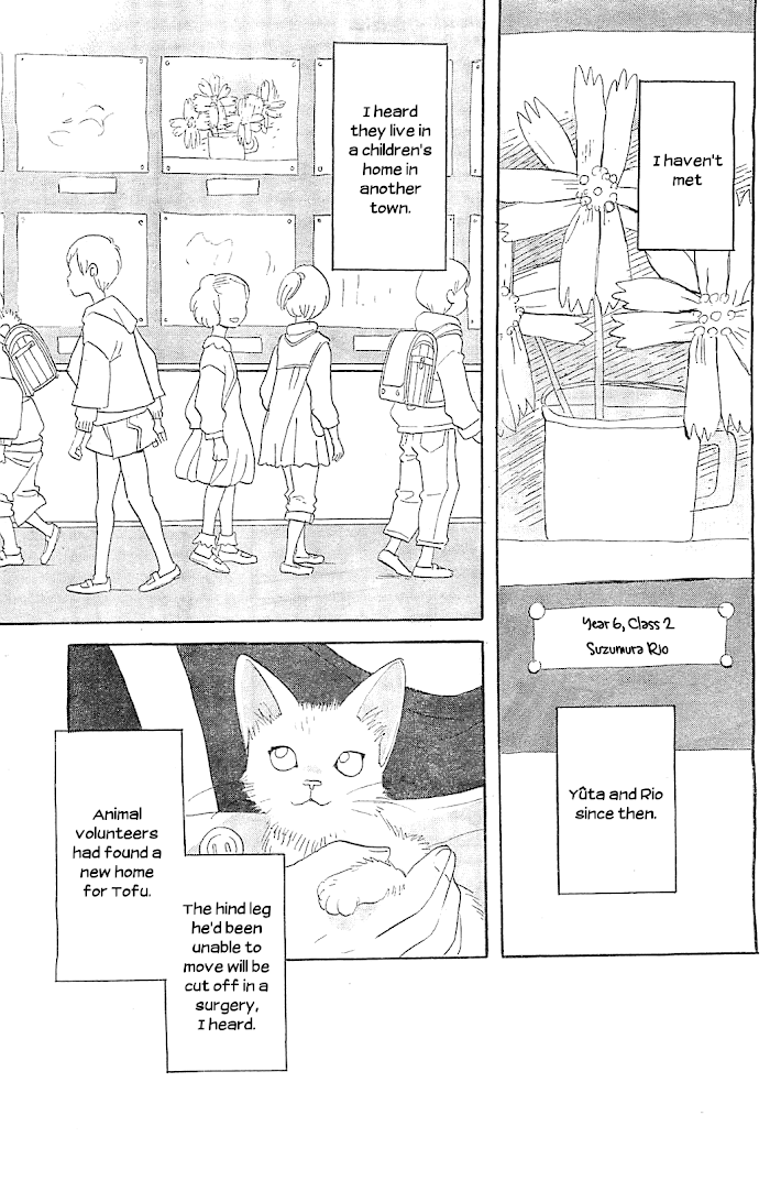 Eleven-year-old Natsuru Nanao is the ace of the soccer team, yet has trouble speaking to girls because of a certain event following his transfer to his current school. Due to his father dying long ago, he lives only with his mother but doesn't let this distract him from his passion for soccer, as he hopes to become a professional player. One day, a female classmate named Rio Suzumura approaches Natsuru, a meeting which signals a huge turning point in his life. Upon talking with Rio, Natsuru immediately becomes interested in her. After he saves an abandoned cat, he runs into the girl and her younger brother Yuuta on their way to the supermarket and asks if they can take care of it, to which they agree. But when Natsuru arrives at their home, he is shocked to discover that the siblings have been living alone in a dirty house, a secret which Rio absolutely wants to keep. As Natsuru spends more time with them, their circumstances and reason for secrecy are slowly brought to light. [Written by MAL Rewrite]