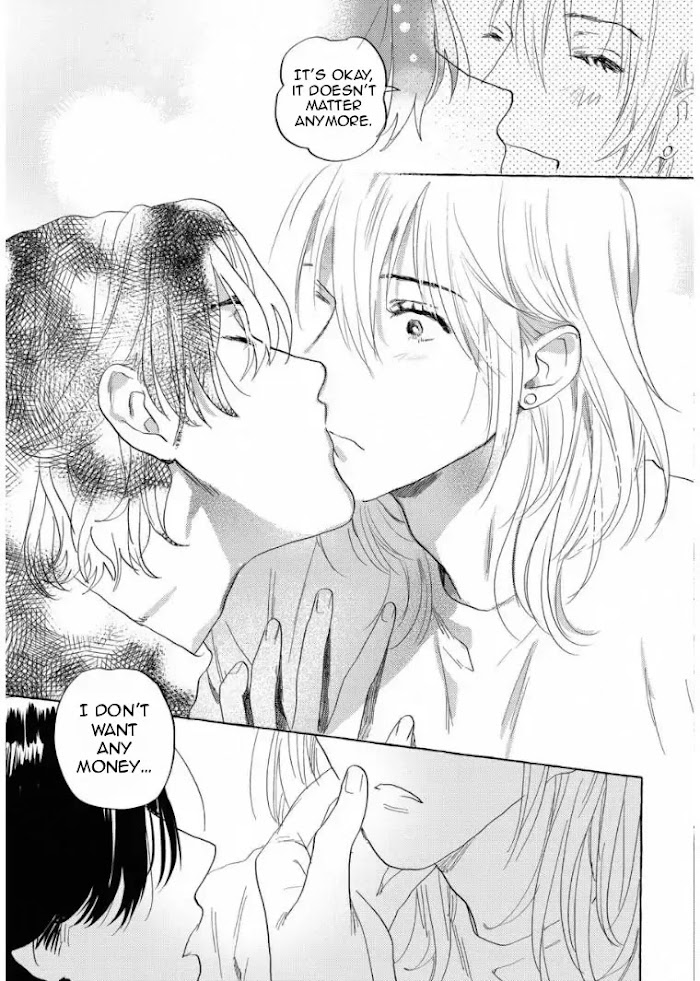 Nishitani, in exchange for his girlfriend's debt, was beaten and forcibly taken away by a debt collector who burst into the woman's room and dragged him away. He awoke in the debt collector's room. "Hold me," the collector said, as a condition for paying off his debt, but he was unable to get an erection. And so began his life under the man with a scar on his face, whom he did not even know by name