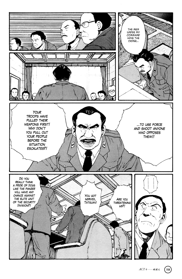 Kerberos Panzer Cop manga summary: Years after the country defeat and occupation period, Japan is still recovering. Although they are on the road back to mass industrialization and prosperity, strong handed economic and political policies have turned many areas into dilapidated slums. Anarchists and anti-government student protesters have taken up arms, stirring up violent social revolution riots. In order to combat this growing threat, the Japanese government has nationalized a division of the police, creating the Capital Police Organization (CAPO). The CAPO consists of hard-trained panzer troopers carrying heavy firearms and wearing special armor suits called Protect Gear, this specialized unit is feared by anti-government groups, criminals and civilians alike.