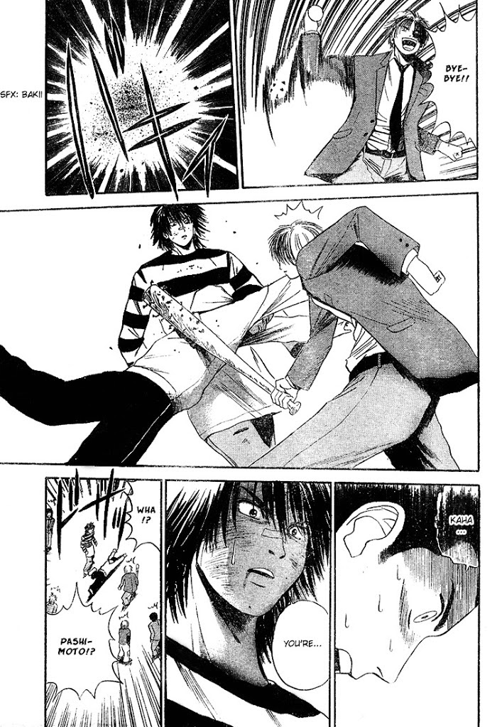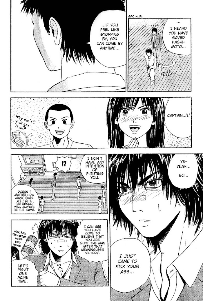 Kicks Megamix manga summary: Akagi Taichi is high school troublemaker who transfers to a new school. He enjoys Martial Arts, and he decides to visit the new dojo. What he doesn't know is that the school has a ghost story: if you look at the picture of the dojo's founder, Chiba Shunsuke, he moves. But not only does Chiba move, he inhabits Akagi's body!