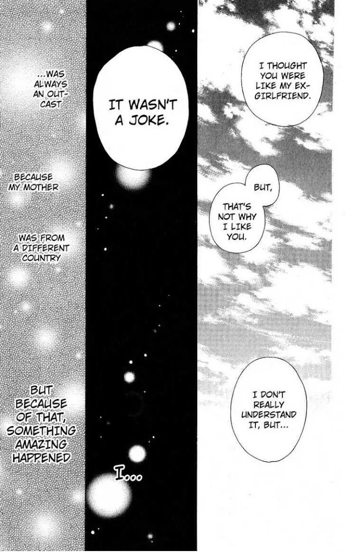 Seto Tomoe moved from Canada when she was five, and was teased because of her accent her entire life. In high school, the bullying is at its worst, and Seto's been completely shunned and removed from school life. But when a red-haired guy suddenly appears, claiming he's an alien, will the bullies let up or only start to tease her to the point of suicide?