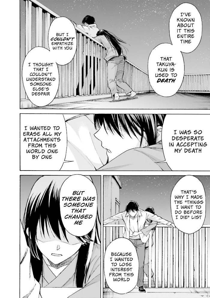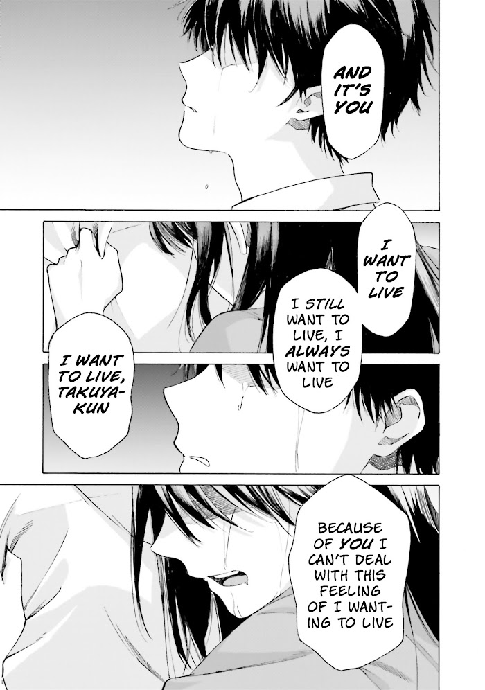 Ever since the death of someone important to me, I've been living recklessly. After I became a high school student, there was a girl in my class who remained hospitalized due to "luminescence disease." This disease is named for the fact that the bodies of those who suffer from it glow faintly when exposed to moonlight, and that glow becomes stronger as their time of death draws closer. The girl's name is Watarase Mamizu. After learning that she doesn't have long to live, and there are things that she wants to do before she dies… "Will you let me help you with that?" "Really?" As this promise was made, the time that had frozen for me began moving again