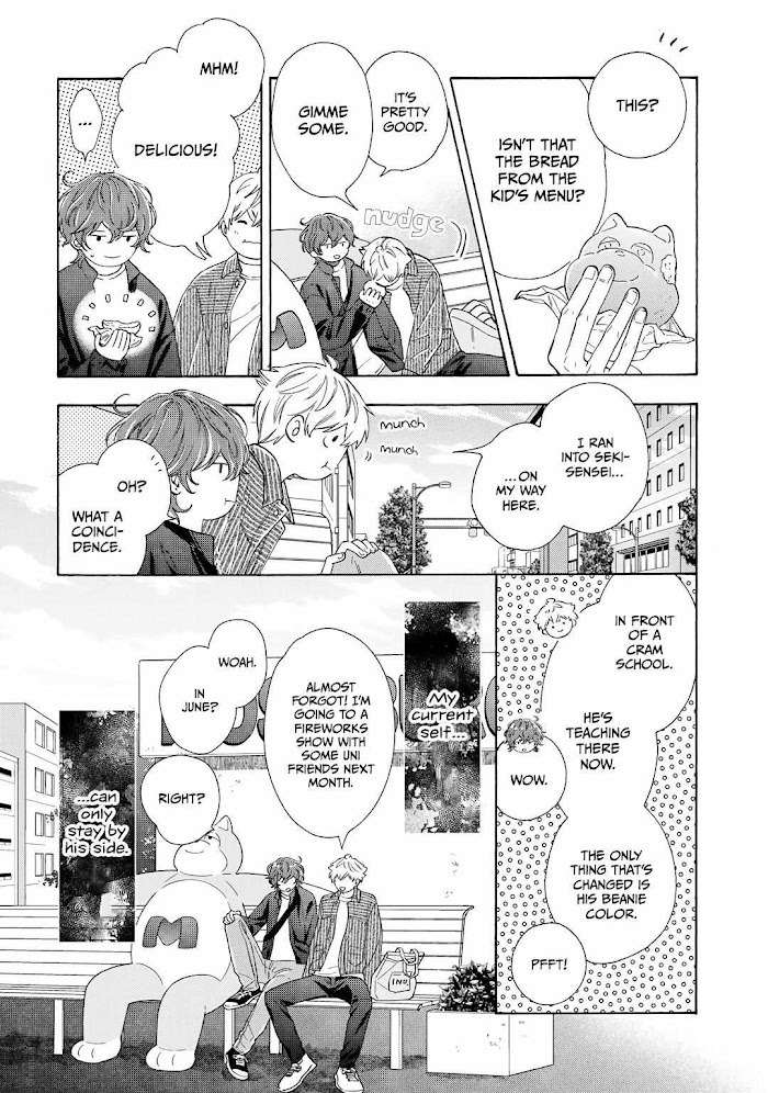 Chitose can't take his eyes off the guy from the class next door, dozing off in class by the window. Each time Chitose leans out the window to sneak a look at him, he's always there, dozing off as expected. His name - Seno. He's a year older, but according to rumours, he was absent for a year because he was involved in a fight. Chitose is a friendly and sweet-hearted high-schooler and Seno is a mysterious guy. The two polar opposites gradually open their hearts to each other… A chaotic and heartwarming school-love between a cheery puppy and a questionable grade repeater.