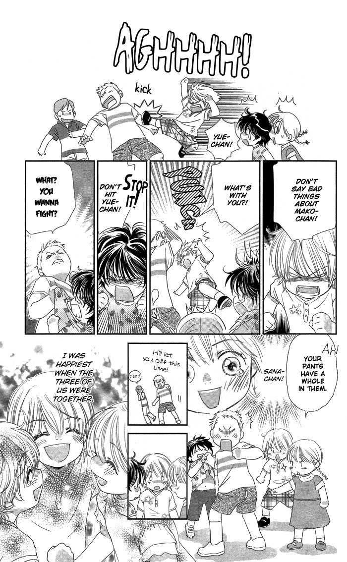 Kisu, Shite Ii desu ka...? manga summary: From Intercross: Yue, Mako and Sana were the best of friends as children however a love triangle between the three caused a riff in their friendship. Now an accidental meeting as adults, will things be different this time around? This oneshot is chapter 4 from the manga Jacket Nuidara Saigo made.