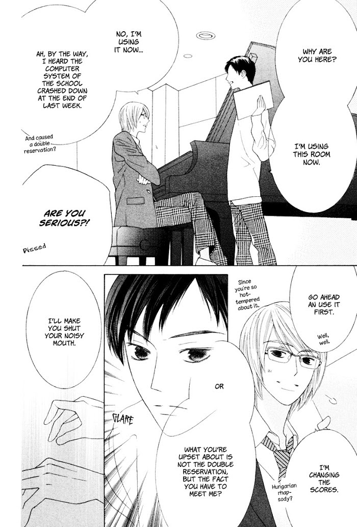 Saitozaki and Moriya are their school's piano prodigies and have been rivals ever since they first met. Everyone thinks they hate each other -- and Saitozaki is convinced that they're right -- but Moriya seems to think otherwise... (Source: MU)
