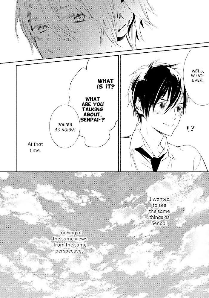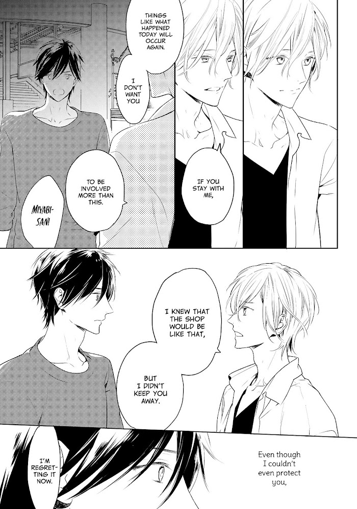 From Peach Kyoudai: Kou, who was supposed to be a very ordinary businessman, unexpectedly had a pair of dog ears and a tail appearing on him all of a sudden. "What the heck is this?! A special constitution?!!" The perplexed Kou immediately turned to his senpai, Okitsu Miyabi, whom he has loved since his school days, for help. Miyabi-san is an exceptionally gorgeous person and he always seems to be looking somewhere far away (it seems he really can see something) with his beautiful eyes. He now runs a cafe he inherited from his grandfather. Even though Kou has been visiting the shop every day, Miyabi-san is still as indifferent as he was in the past. However, he seems to be very fond of Kou's ears and tail…?