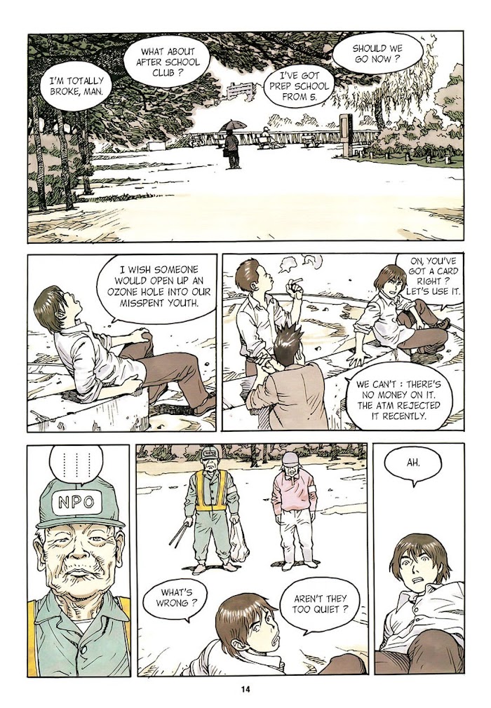 Social misfits On, Hanaken and Shinta spend an afternoon in the park shooting the breeze. As they wonder what direction life will take them, a chance encounter with an older generation leads to confrontation. (Source: MU)