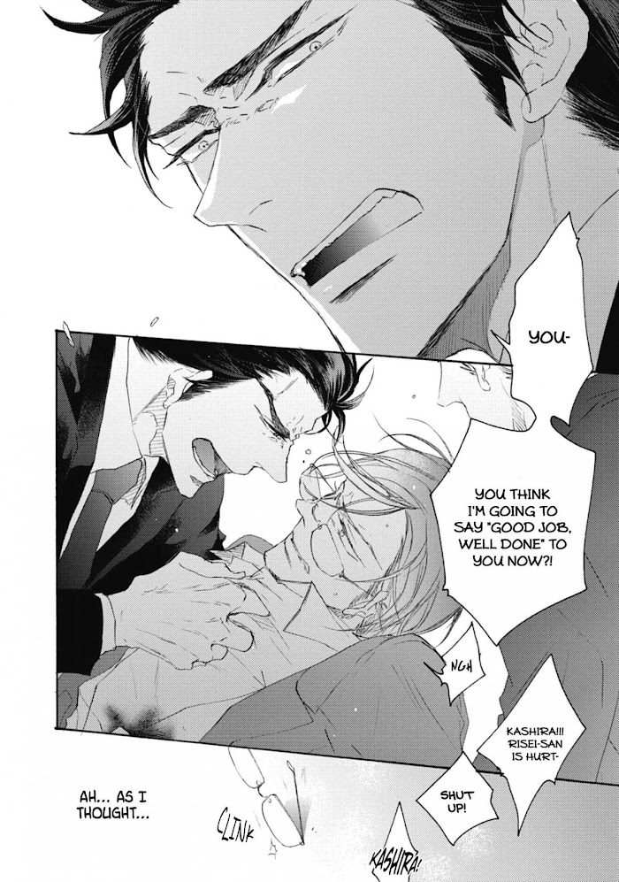 Years after their physical relationship seemingly ended, Kou appears before Risei again as the Family's Wakagashira. Having previously been asked by the Kumichou to look after Kou to ensure that his son lives a regular life, Risei is bewildered by Kou's sudden return and his assignment to work directly under Kou. Risei wonders why Kou, someone who seemed to dislike the Yakuza in the past, became the Wakagashira. Kou then declares, "I did this to make you mine"…