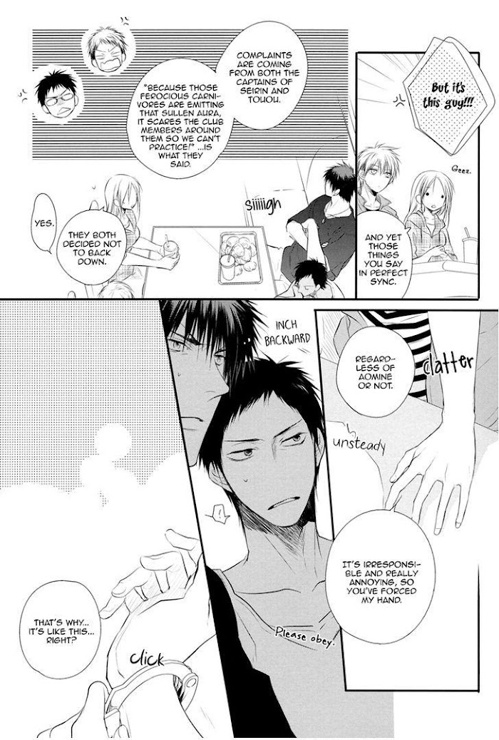 Pairing: Aomine x KagamiFrom Fujoshi Bitches:Aomine and Kagami have been having issues so the best way to solve it is by handcuffing them together... right?