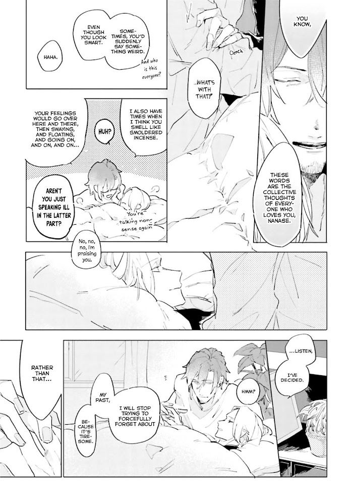 Because of the past trauma, Nanase, who became unable to stand men's smells, won't take off his mask even during sex, causing his sex friends to be fed up and leave him. Then, the one Nanase hooked up with when being pent up was a man who had a similar smell to his ex-boyfriend, the source of the trauma. Feeling his "inner self" has been broken into, Nanase struggles and runs away without thinking. But, a few days later, lured by the nice aroma of incense, Nanase goes into an incense store and meet the store owner and also the same man from the last time, Kei…! No matter how much it was rejected and pushed away, the warmth that always stays by its side will touch and melt the heart frozen in the past…
