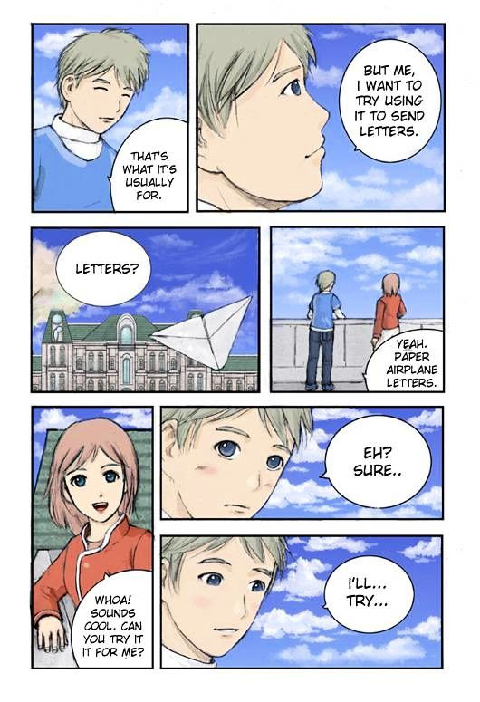 Letters to the Sky manga summary: A little paper airplane, a magic academy, and two very different children. They make a promise at a young age--and seek to keep it once they're of age. Original webcomic: http://wignas.cafe24.com/cartoon.htm