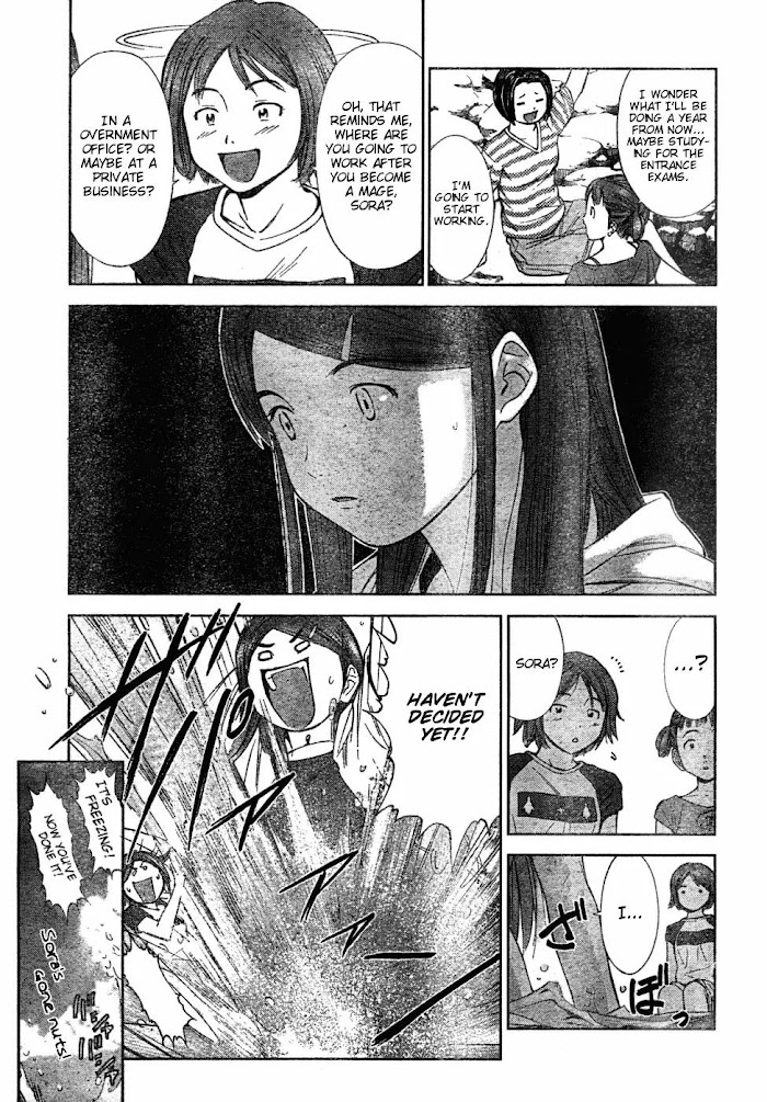 Suzuki Sora is a cheerful country girl from the small town of Bie. She made a promise to her father, and following this promise applies and is accepted for a magic intership in Tokyo, where she will face the life in a big city. While training to get better with her magic, she meets a mysterious boy also practicing to become a mage. While he can not use magic that well and he seems distant and cold at first, Sora's fate intertwines with his and the two are thrown together, learning a lot of new things about life and each other. (Source: MU)
