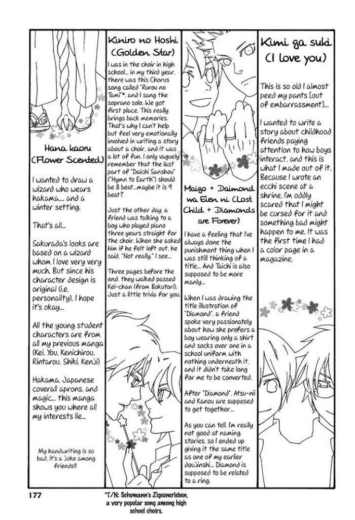 A collection of one-shots featuring school boys in angsty love. 1. Lost Children 2-3. Diamonds are Forever 4. Golden Star 5. Flower Scented