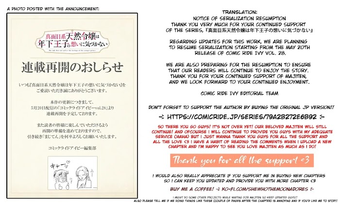 Majime Tennen-kei Reijou wa Toshishita Ouji no Omoi ni Kidzukanai summary is updating. Come visit vymanga.net sometime to read the latest chapter of Majime Tennen-kei Reijou wa Toshishita Ouji no Omoi ni Kidzukanai. Hope you enjoy it.