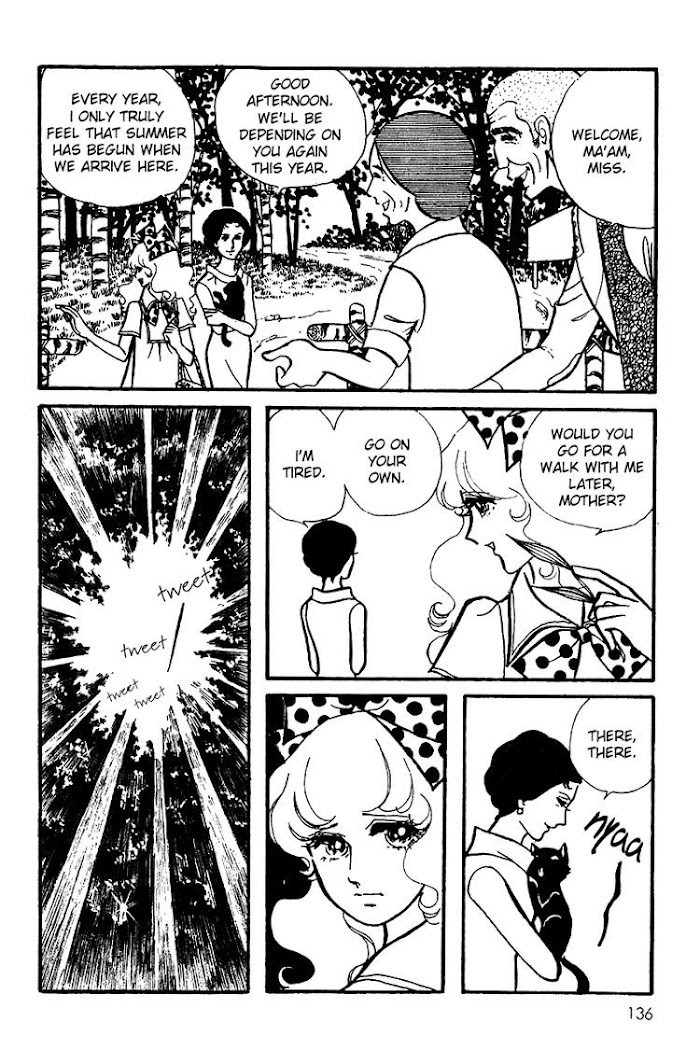 Maya's Funeral Procession dates back to 1972; Ichijo's style is very different here, a combination of the quickly evolving shoujo style still very influenced by Osamu Tezuka's designs and of the blockier Gothic horror style reminiscent of woodcuts. The blacks are very solid, the whites are very bright; there is some stippling and cross-shading, but it all looks hand-drawn rather than screen-toned, and the panel layouts are just gorgeous. On the way to her family's new country house, innocent young Reina notices a tall, dark, striking woman standing in the shadows. Soon, neglected by her parents, Reina falls under the spell of the mysterious Maya ... but family secrets may destroy any chance Reina has for happiness. This is one of the earliest examples of shoujo-ai (girls' love or lesbian romance) in manga and it is the kind of over-the-top Gothic melodrama that could easily be slipped into a collection by Edgar Allan Poe. (Source: coffeeandink)