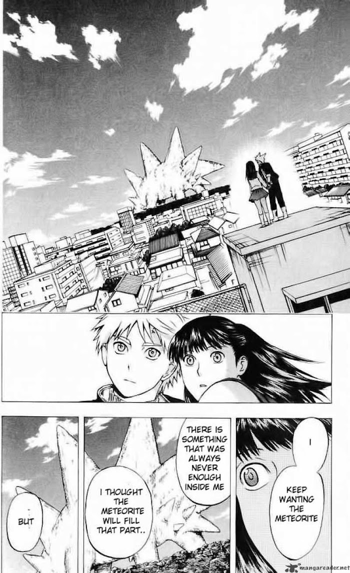 Thirty years ago a series of meteorites rained down on Earth, destroying much of civilization. Decades later, pockets of humanity are beginning to reemerge, but many of the children who have been born after the crisis have been mutated by radiation from the meteorites. They are called the Meteorite Breed. Tooi, a fourteen years old kid that eats a lot, is one of the Meteorite Breed. But he is a rare one... (Source: MangaUpdates)