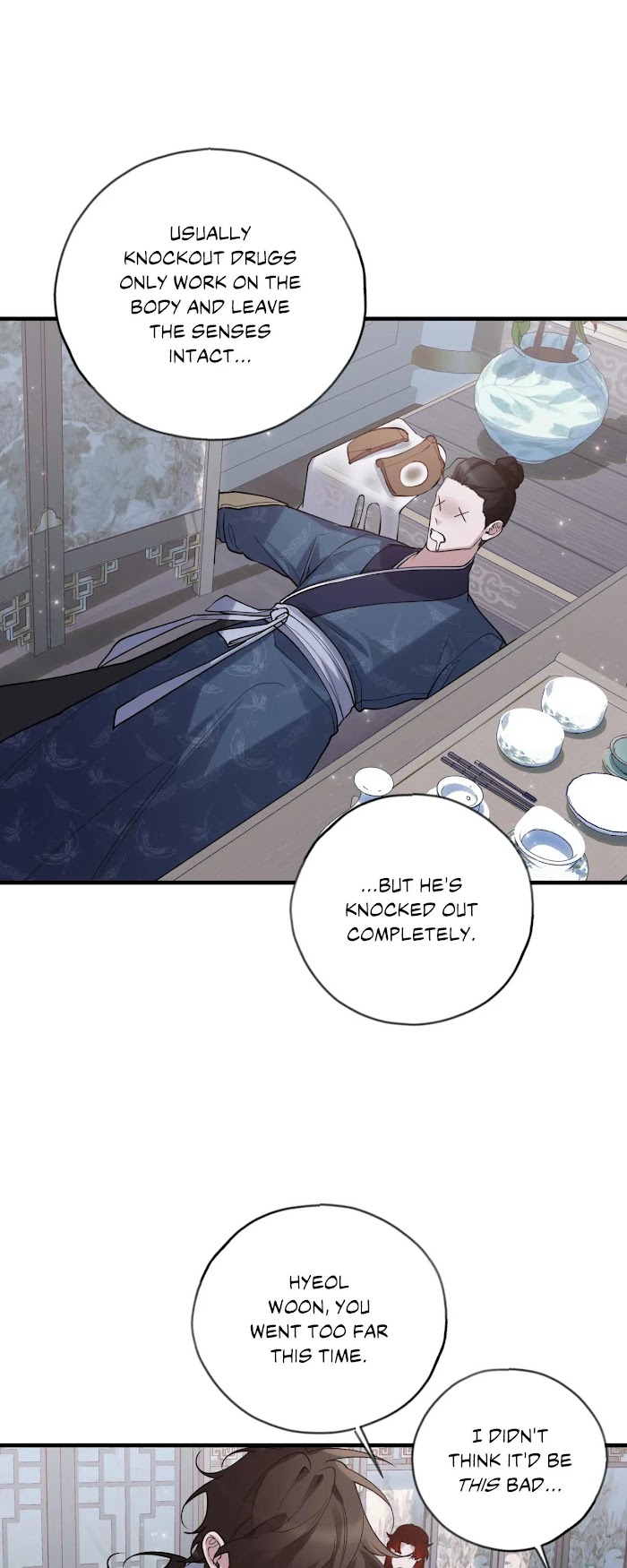 Minhwan became the next head of the Jegal family due to his brother's sudden death. Following his father's order, Minhwan goes to a forest. He entered The Yarim and made Danryeong, the head of the Demonic Cult, his master. Dan-ryeong who seemed cold to everybody but Minhwan, causing him to develop feelings. The night when The Yarim was filled with the light of the full moon, Minhwan learns that Danryeong has a liking for drinking blood. Hungry for affection, Min-hwan begs Dan-ryeong to drink his blood... "Master, after you finish drinking this blood, you must hug me again.” A master who covets his student's blood and a student who wants to be embraced by his master. The heartbreaking and impure full moon night is coming!