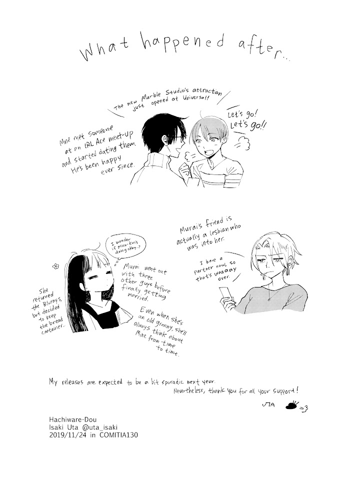 Mine-kun is asexual. He doesn't like sexual intimacy in a relationship. He can kiss a girl, but it's not something he wants to do if he can help it. But Murai loves him so much that she's willing to overlook the fact that she can't hold his hand; that she can't cuddle up next to him when they watch movies together; that she can't fall in love with him the way that she hopes to be loved in return. In the eyes of those around them, is this even a relationship that's meant to last, or is it a train wreck just waiting to happen