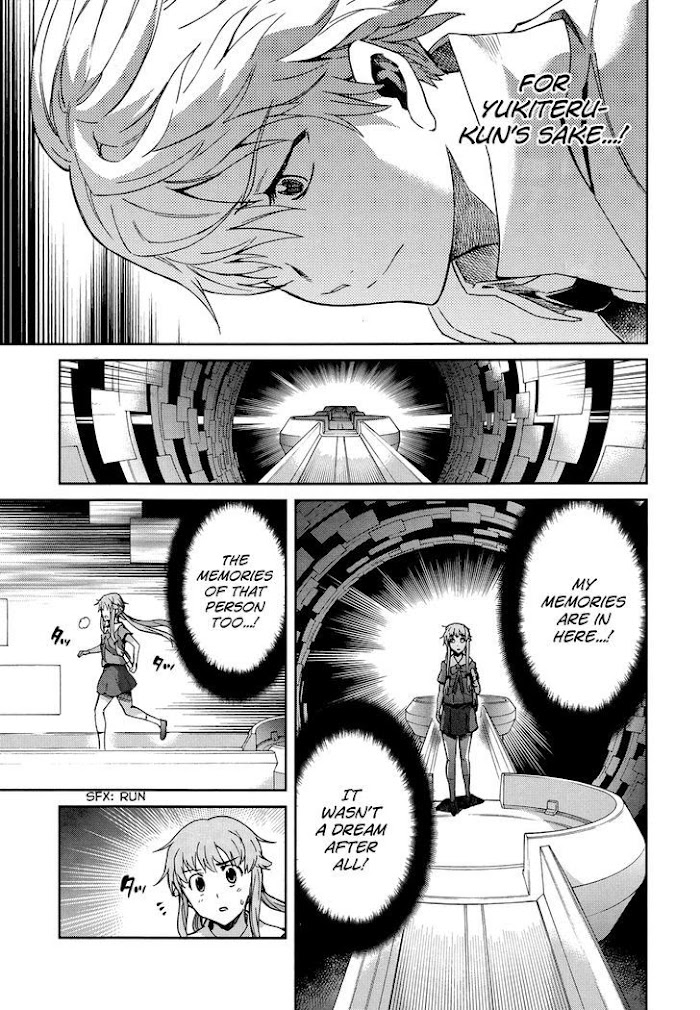 A story that picks up after the first story ends. It tells the tale of the 3rd Universe's Gasai Yuno after her encounter with the Yukiteru and Yuno of the other universes. Her life seems normal, but something feels like it is missing. She can't help being fascinated with the boy in her grade, Amano Yukiteru, because he keeps appearing in her dreams...