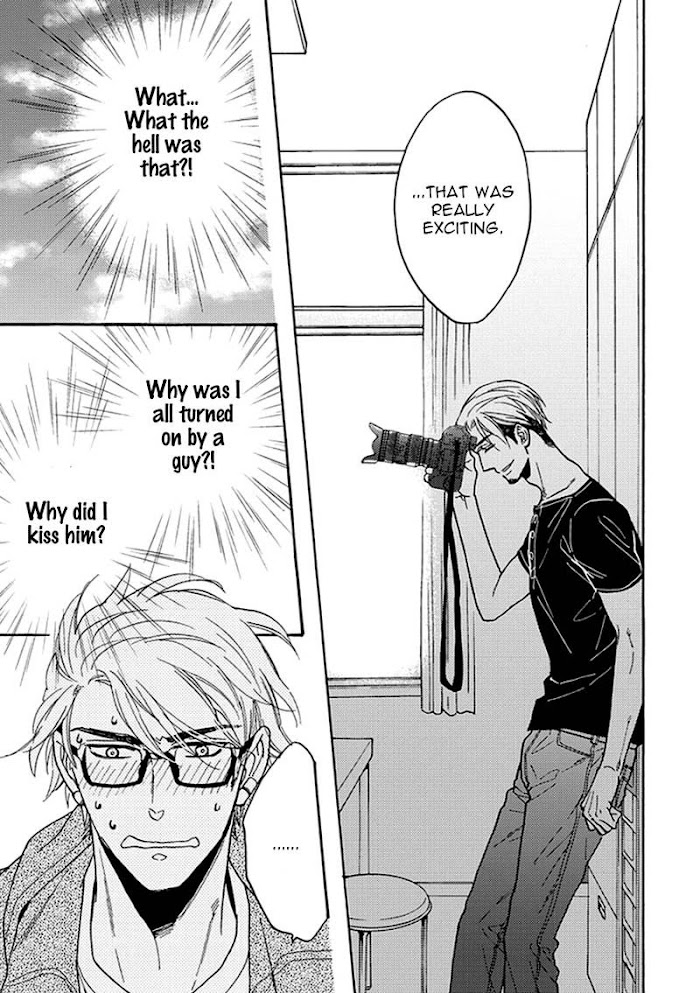 From Exiled Rebels Scans:Ioroi Shinya is known as the playboy photographer who will do anything to get a good photograph. He is in charge of the gravure models from Tamaki Kotarou's publication, who is an outgoing manga editor. This is a battle between two seme's who are both mature experts in love."Being captured through this lens… makes you want to be fucked, right?"Debuted on Magazine BE×BOY issue no. 2017-10.