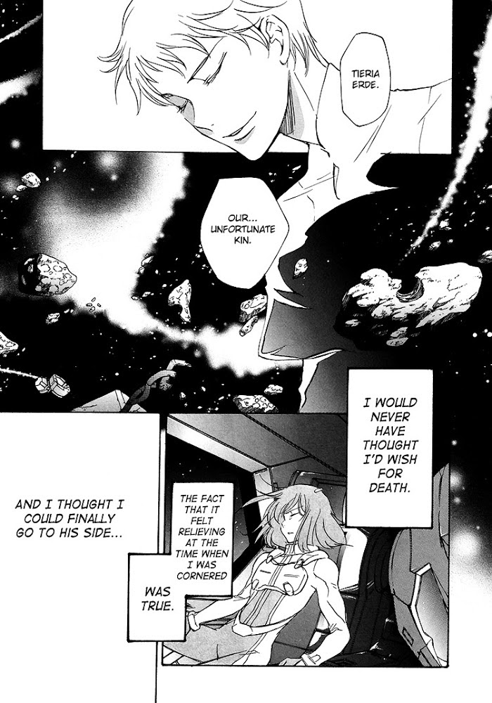 A collection of six short stories originally serialised in Newtype and set between and after the first and second seasons. ・ Where Earth and Sky Meet (June 2010) (Where Emptiness and the Earth Meet/Where Space and Earth Meet) A short focusing on Marina and the Celestial Being members following the second season finale. ・ The second birthday (July 2010) The confrontation between the two who bear the task of guiding humanity continues. Secrets of the past, the motivations of the Innovators, and the motivations of Ribbons Almark... on the eve of "A Wakening of the Trailblazer", memories are stirring within Veda... ・ Wanderer (November 2008) Following the first season's finale Setsuna wanders the world and ends up in an Irish bar. ・ I'm Home (March 2008) In the wake of the first season's climactic battle Tiera struggles to comes to terms with what happened as he attempts to bring Celestial Being back together. ・ Praise the Lord - Allelujah (2008) After Allelujah finds himself imprisoned, his begins to think about his past. ・ The Beginning Man (2008) Lyle thinks back on his relationship with his brother and the reasons they separated years ago.