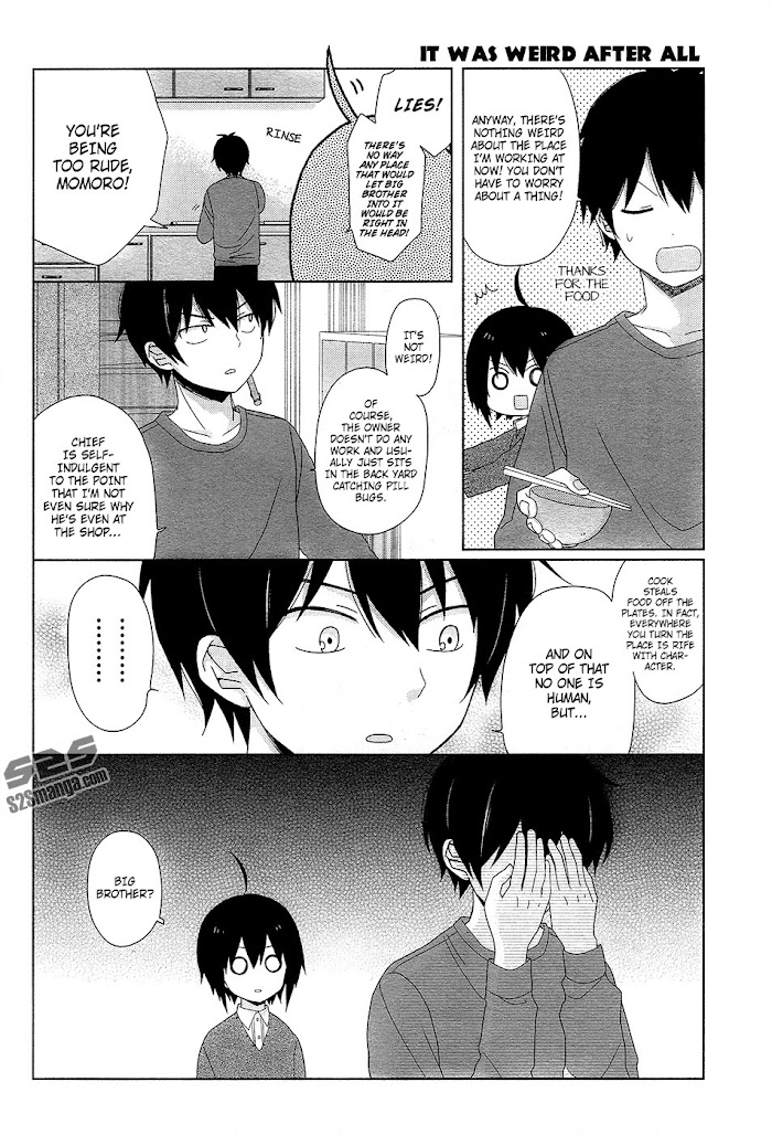 Mamiya Chihiro, a poor student afflicted with the ability to see ghosts, is stalked by a Youkai who wants to hire him to work at his restaurant. (Source: MU)