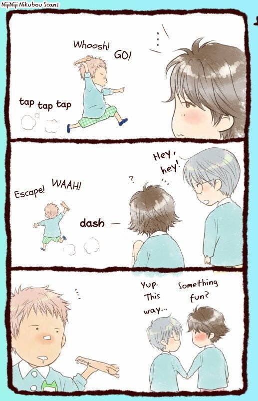 Skipping class on the rooftop one day, Shunpei's best friend Fumi tells him he thinks he might be gay. All set to freak out ("Then up 'til now he's been thinking that way about me?!") Shunpei's a bit nonplussed when Fumi's confession turns out...to have nothing to do with him at all! In fact, Fumi's already going out with someone else. Cue adolescent meltdown. (Source: MU)