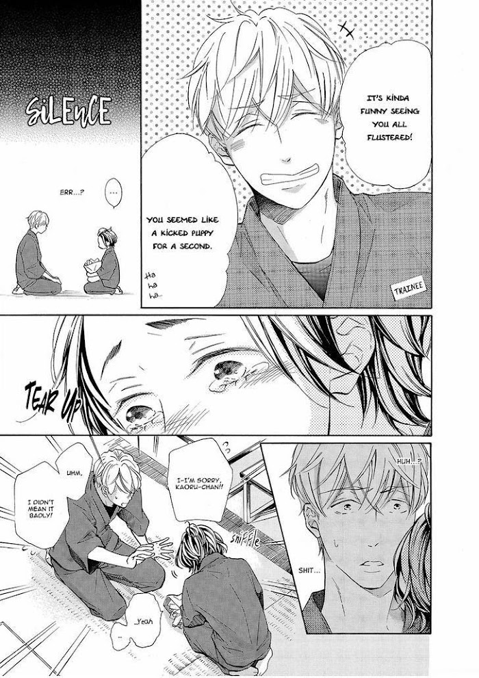 Yukimura got kicked out of home because he was the son of a mistress and his dad passed away. After going abroad to cope, he then applied for this job to be a waiter at a resort. Yukimura pictured fancy bowties, music, and trees by the poolside. However, day one he finds out he’s working at a traditional Japanese inn with a rather cold boss. It seems that people who work at the inn have nowhere else to go…(A Nakai is typically a female profession at a traditional Japanese Inn. They tend to the guests, do housekeeping, carry luggage, make meals, host events, and more. It’s a female profession because it’s said that they provide the care and attention that only women have.)