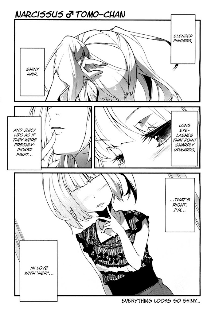 Tomo Fukuya loves taking pictures of himself while cross-dressing, and he's gained some notoriety among his schoolmates because of it. He participates in his school's beauty contest during the school festival against his friend Kei Okabe.