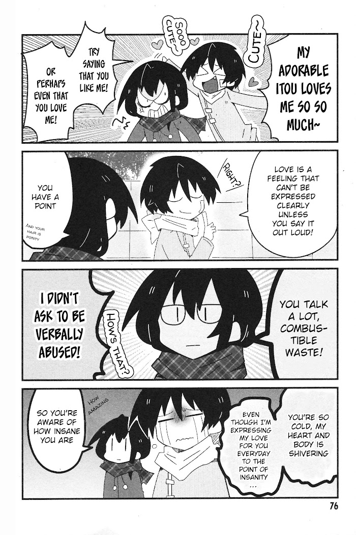 Naze da Naitou manga summary: "I love you! Let's get married!" That is how Itou's first encounter with Naitou went on their first day of school. Since then, Naitou has been relentless; proposing to Itou at every opportunity and singing his love for her. But Itou is no obedient goodie-goodie to just sit back and let Naitou do as he pleases. Firing back with her own diatribes, she is determined to fight this out till the end. A comedic tale of two twisted idiots and a boy's neverending pursuit to get his girl... even if that girl absolutely hates him.