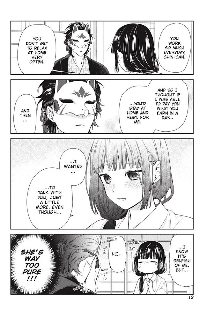 Married off to a man more than twenty years her senior, Koyuki has no idea what her new life has in store for her. She's so in the dark, in fact, that she hasn't even seen her husband's face! But Koyuki isn't alone in fumbling through the intricacies of wedded bliss. Mask-donning Shin might have many years on his young wife, but as it turns out, he's just as naïve as she is! Will this pair of innocents ever get past their awkwardness (and the age gap)?! (Source: Yen Press)