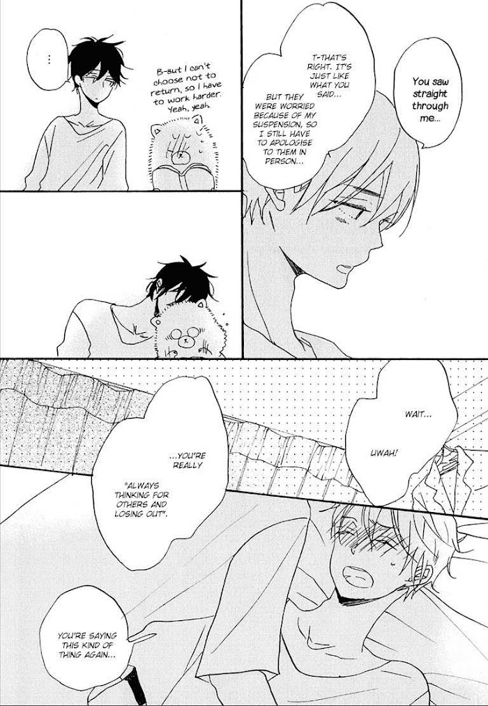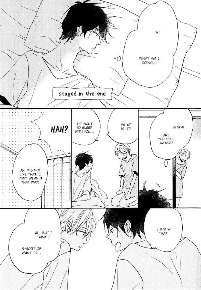 Hirano Haruto, a freshman, moves into a dormitory and has Morioka Toushi, a scary looking upperclassman assigned to him as his guidance manager. Rumors say that Morioka used to bully his junior back in middle school, but is he really as bad as everyone makes him out to be?