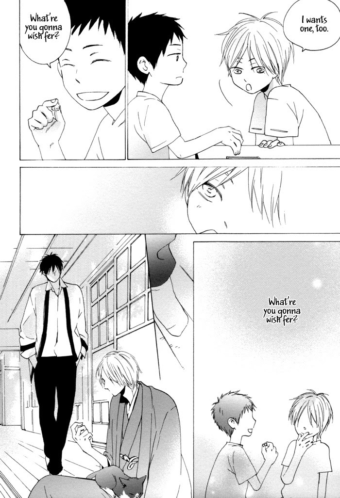 Chihiro is the heir to Tsurumaruya, an old, well-established Japanese confectionary. He is secretly in love with Katsumi, a childhood friend, who is also the manager of the store. His feelings for the over-protective Katsumi keep growing, but Katsumi wants to fulfill the last wish of the previous owner and live his life as the manager. With the two of them unable to connect their feelings, Chihiro is asked to go to Tokyo by an important customer. The lives of the master and manager are bound by family tradition. In addition to this popular series is a story about a nephew who suddenly ends up living with President Mori and two new stories. (Source: MU)
