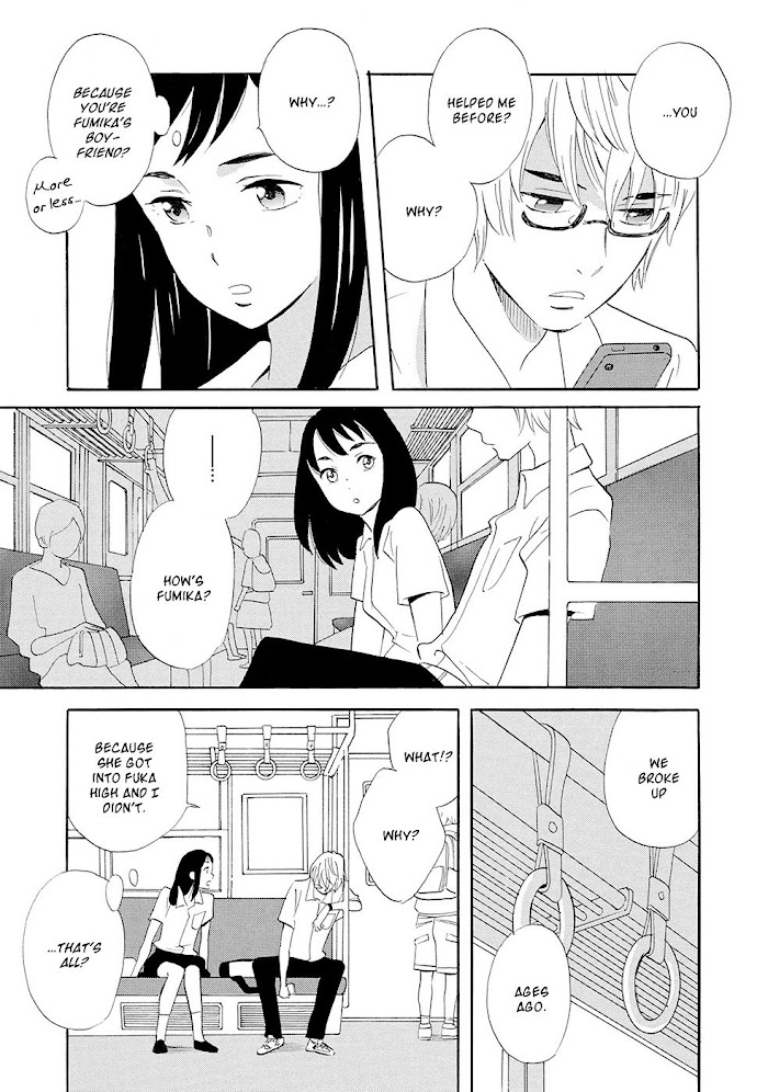 Ningyo Ouji (OZAKI Kaori) manga summary: The title story, “The Mermaid Prince,†told in three chapters, is a coming-of-age story set in Okinawa. The boy, Mugi, has a fascination with mermaids. He moved in from Tokyo when his sister got married to a local man, and doesn’t quite fit in. On the day he met the girl, Madori, she was just coming to terms with her new family situation. His thoughtful gesture made her view him as her Prince Charming. In the second story, “Snowy Day,†a homeless father and son take refuge from the snow in a library. The librarian soon finds out there is more to them than meets the eye. The third story, “Ametsukigahara,†is a two-parter about a girl named Akari. There’s not much she cares about in this world, except maybe her friendship with Fumika, who’s afraid of boys. But then Fumika gets a boyfriend, and something happens that makes Akari even more jaded than she already was.