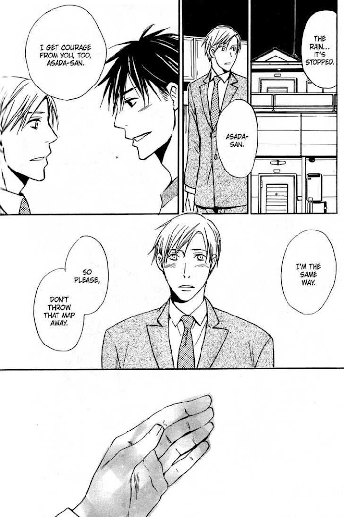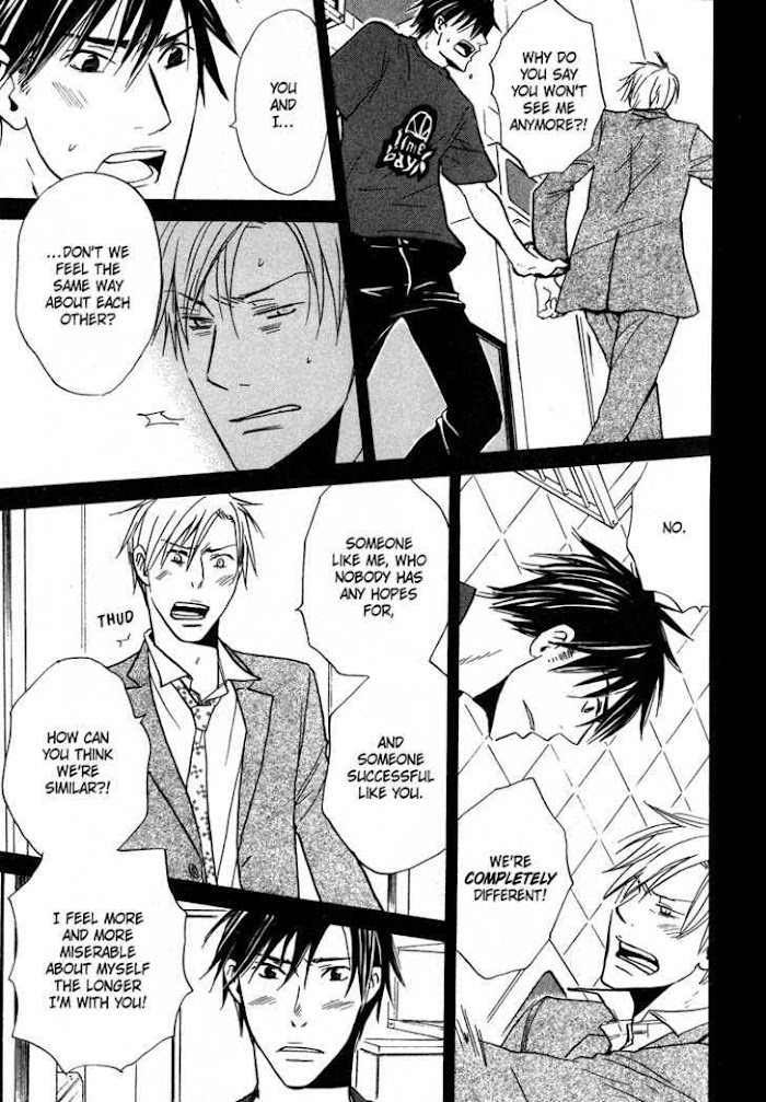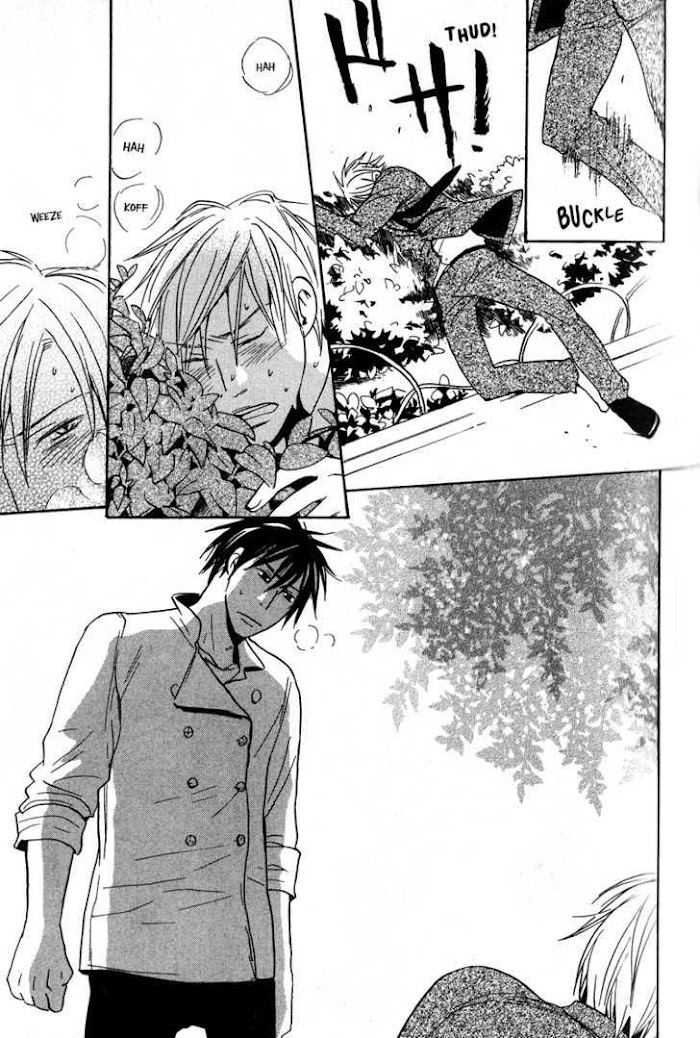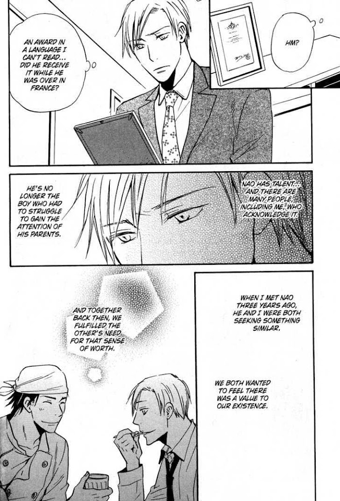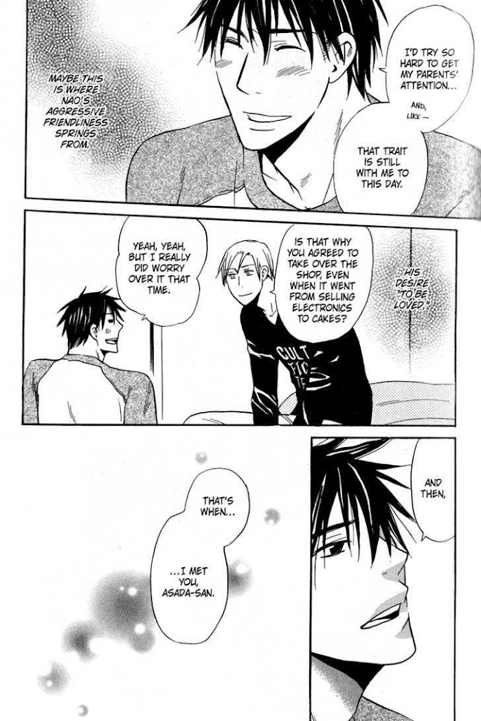 Akida is truly miserable. After three years, he's been reunited with Nao, who has succeeded as a patisserie and is now a formidable rival at Akida's department store. In the past, Akida's cold anger turned into love. But Nao doesn't know that... A love story of two male hearts that swing between pride and heartache! (Source: Juné)