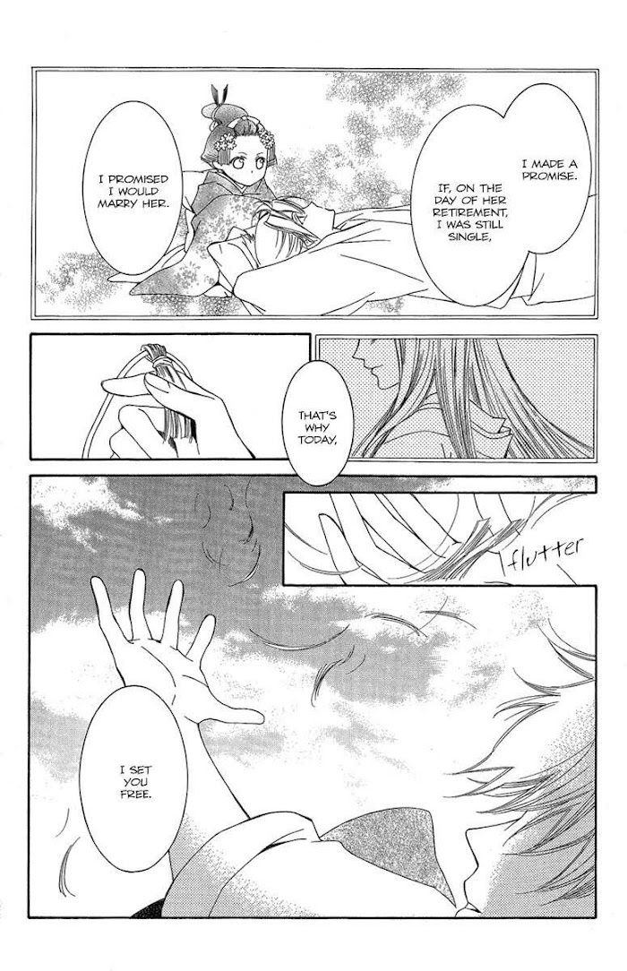 Eight years ago, Tsubaki, a daughter of a successful businessman, was reluctantly given to the Yoshiwara, the red light district of Tokyo, after a tragic fire burned down the entire family's wealth and belongings. Shin, a childhood friend of Tsubaki's, coldly turned his back on her now that she was poor. Furious, Tsubaki, threw herself into becoming a top oiran girl to beguile him with her looks and then reject him one day! But plans are never as easy as they seem. For one, the beautiful and cold-hearted Takao stands in her way. Included one-shot: Volume 4: Ginrou no Sakura (The Silver Wolf's Sakura)